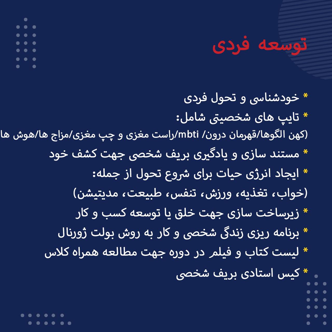 برای اطلاعات بیشتر و ثبت نام در دوره، در اپلیکیشن واتساپ با شمارهی 09372789486 در ارتباط باشید.